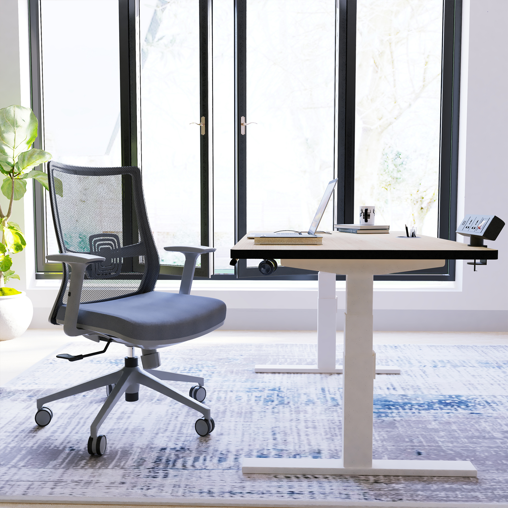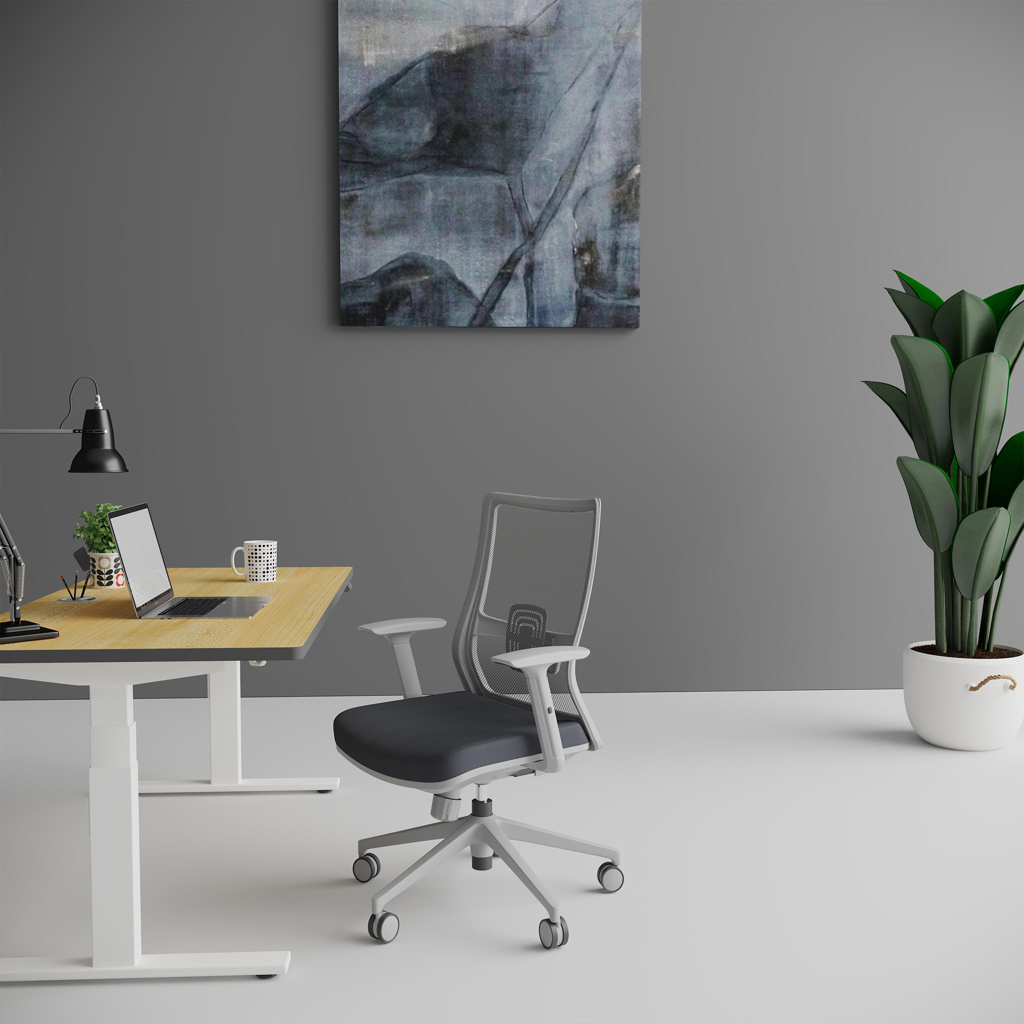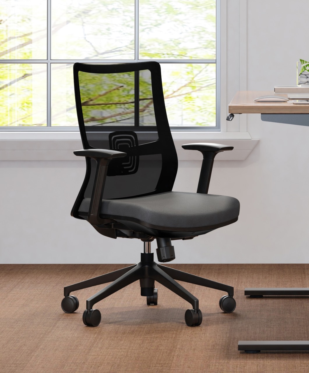 Upholstery: Black frame with charcoal mesh seat & backrest.