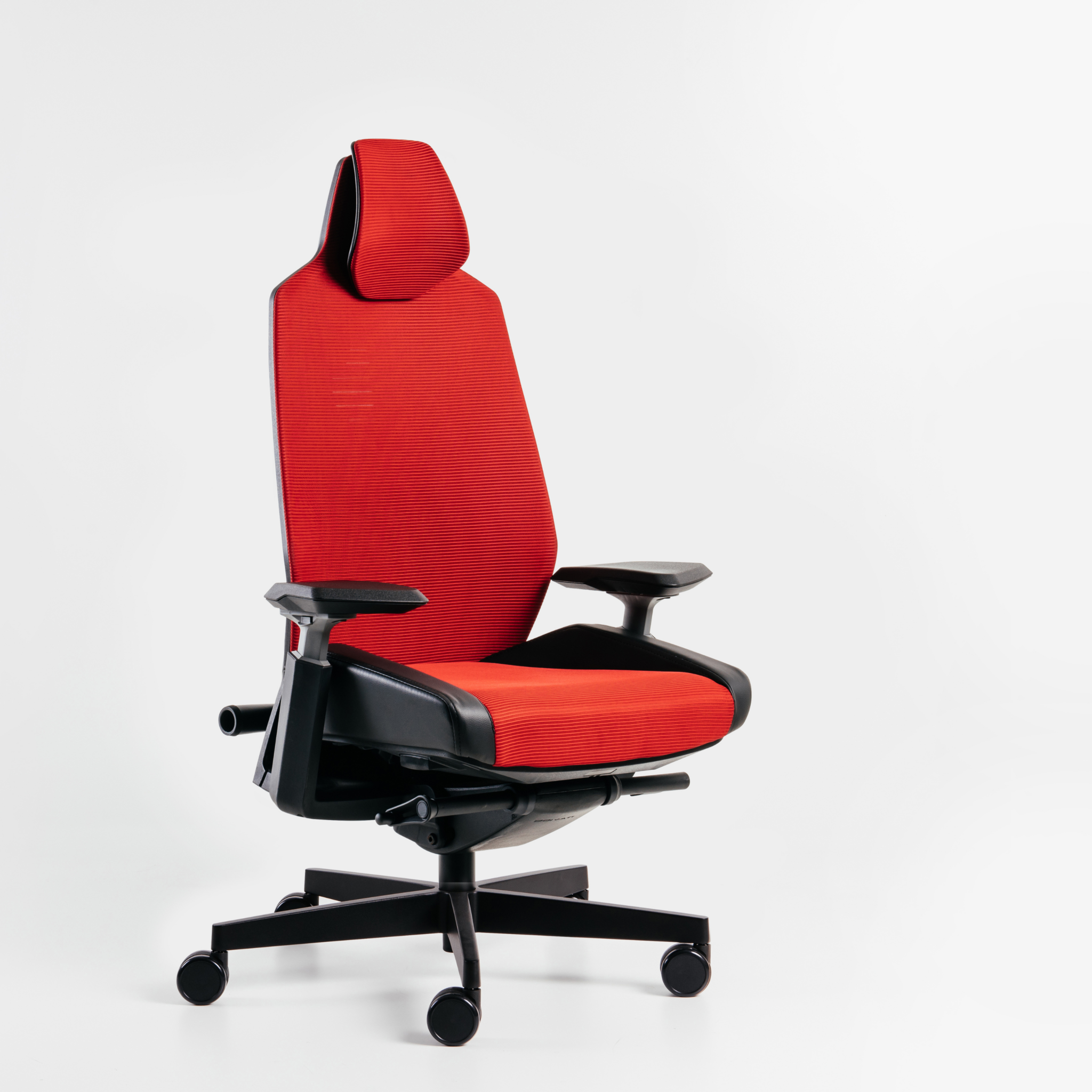 1. Headrest : Flexible Upholstered option with “RIBS” polyester sandwich Grey mesh (100% recyclable).