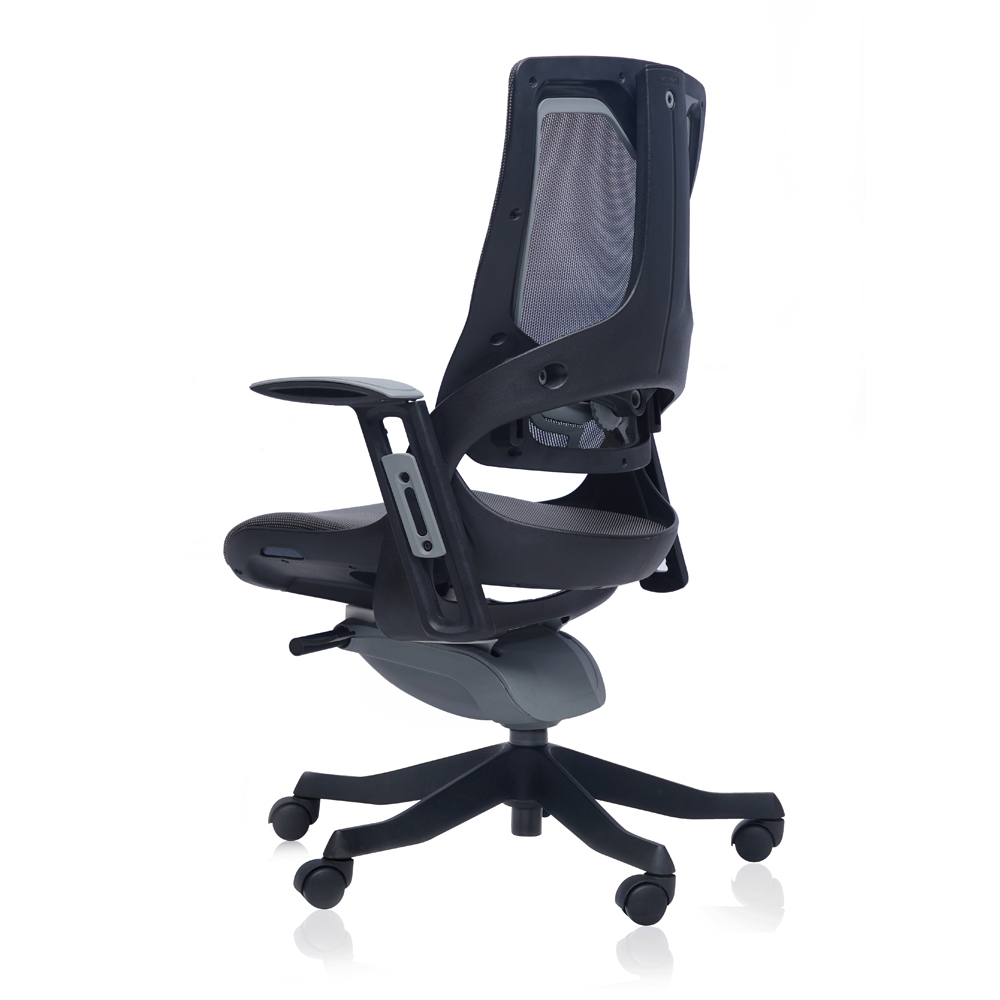 Upholstery: Black frame with charcoal mesh seat & backrest.