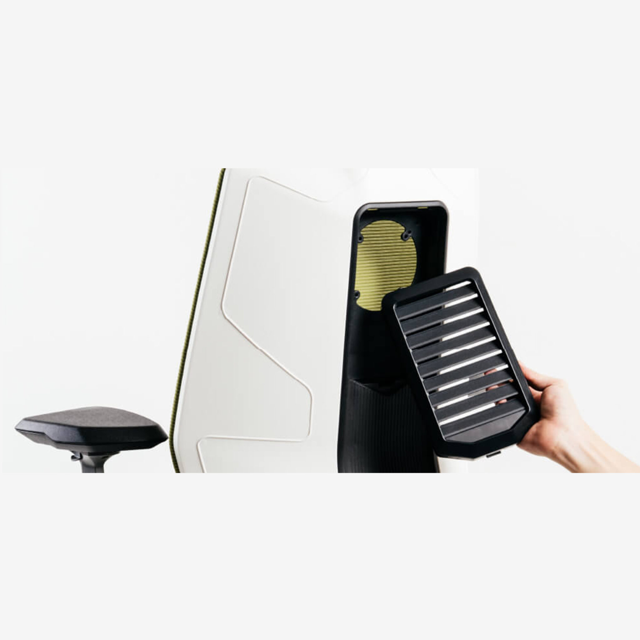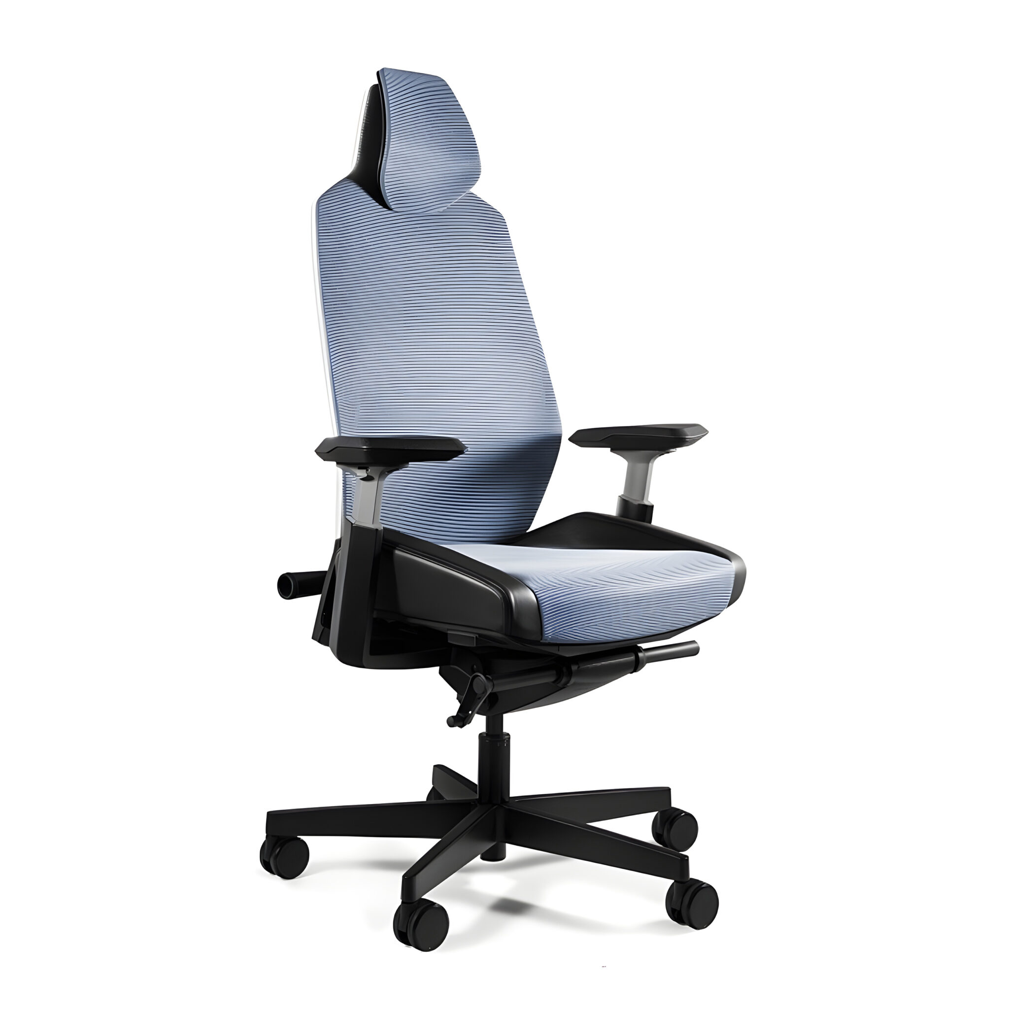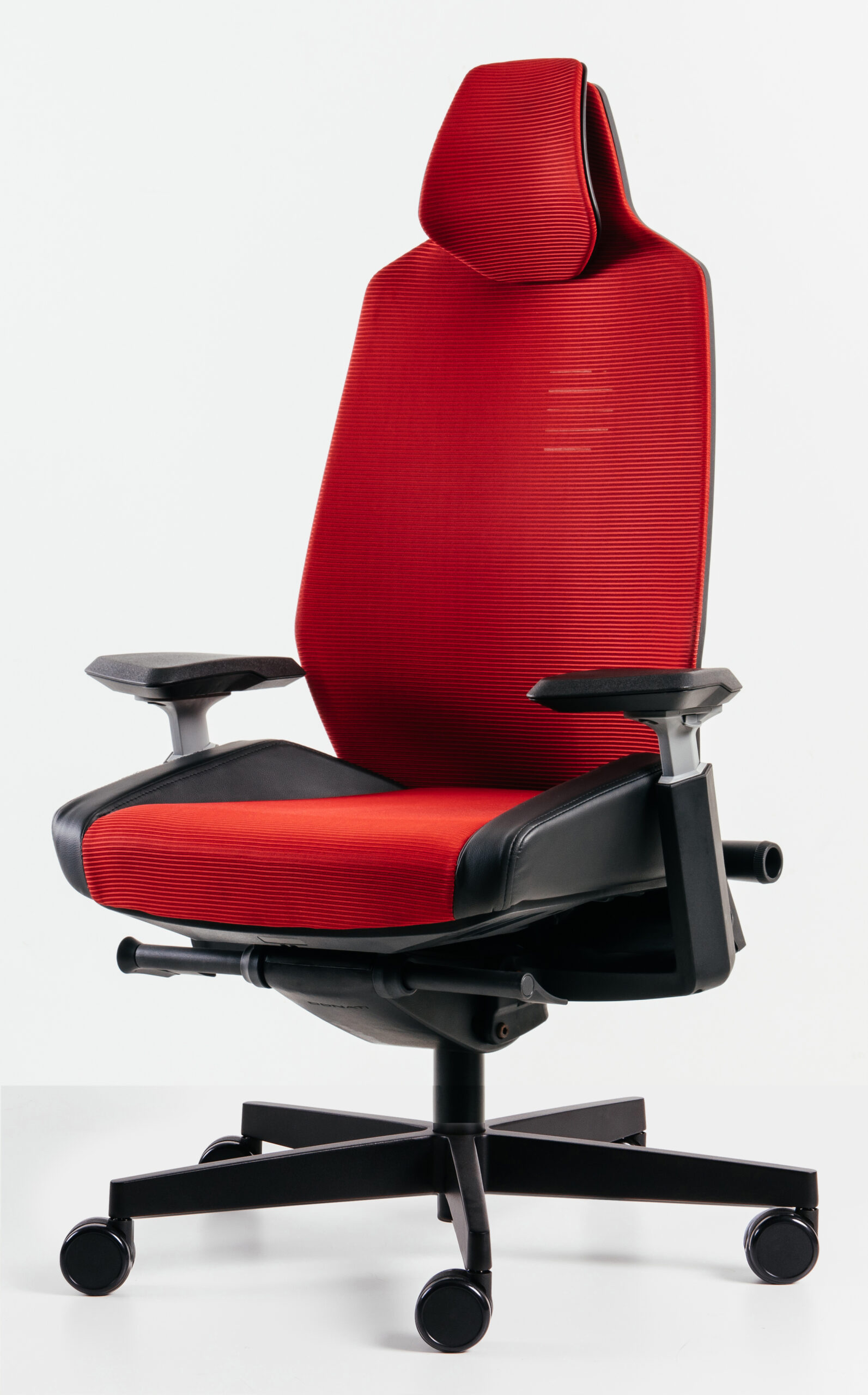 1. Headrest : Flexible Upholstered option with “RIBS” polyester sandwich Grey mesh (100% recyclable).