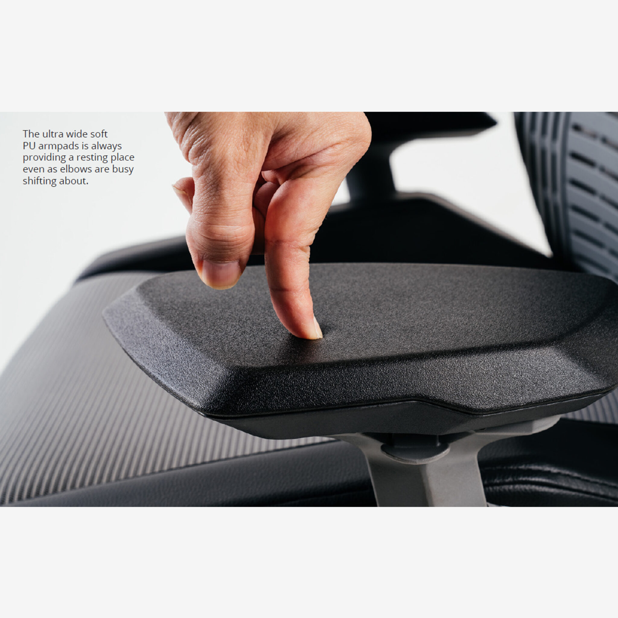 2. Armrest : Soft touch arm pads adjustable for 10cm height and 5cm width.
